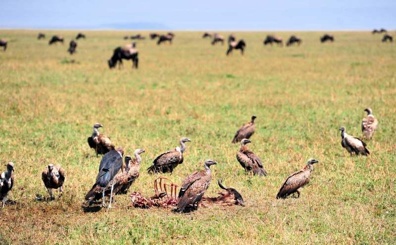 馬賽馬拉國家公園有世界上密度最高的大型哺乳動物.當然也會吸引許多肉食性動物前來獵食..當肉食動物吃不完的腐肉就交給環保天使-禿鷹與禿鸛..這篇把這兩種大型鳥類一併說明..基本上禿鷹比較小隻但是兇猛.禿鸛比較大隻最重的超過9公斤.但是性情很溫馴.. 禿鷹與禿鸛牠們有時候會一起進食.