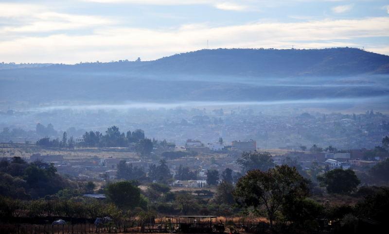 最後是照片導覽..我們一大早從墨西哥第二大城瓜達瓜哈拉出發.沿途山嵐薄霧隴罩(460-471).如詩如夢中..482-483蓋在郊區的國民住宅.格局方正.看似無趣.但是整列從遠方看起來又饒富趣味..484-485經過一個像桌山的青翠山谷.遊覽車快速經過有自動噴水設備的農場.感覺這間農場非常美觀..486-487遊覽車經過公路管理處附近.路樹都被裁剪成動物造型..494-495這間尖塔型的建築設在高速公路交流道旁.造型特殊.我放大檢視後.發現金色針尖頂上還有豎立一座十字架.好像距離上帝更近了..496-499在山頂上有一棟超大的建築物.屋頂還矗立一座超大雕像環視整個山谷..