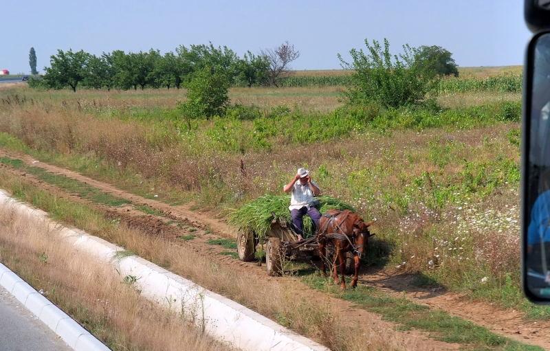 現在來做照片導覽..2700-06是我們今天的初發地點-喜來登飯店..因為首夜與第3夜都住在此.因此在即將離開前.將此5星級飯店(整段巴爾幹行程.有2次入住5星級飯店..之後在索非亞也是喜來登飯店..)的景觀餐廳多拍幾張留念..2712在電車後面的建築物.曾經入圍世界10大奇怪建築物..車拍角度不會太好.加減看看嘛..2715-17馬車還是羅馬尼亞和保加利亞這2國的農村最重要的交通工具.偶而還能看到馬車在首都裡奔馳著.確實是蠻吸睛的畫面..2718是跨國大橋的收費站..可以選擇收歐元.或羅馬尼亞幣.或是保加利亞幣都行..在照片中同學們可以換算各國幣值的大小..其中收費標準.遊覽車單程費用高達25歐元..相當於新台幣1千多元..太可怕了..2719-27是跨國大橋-友宜橋的連續照片.照片中看到前後段用水泥長柱平鋪施工.但是中間路段落跨徑很大.改採更堅固的廂型交叉網式.有點類似台灣的舊西螺大橋..其中行車到達中心點國界處寫上-保加利亞英文字(背面當然是書寫羅馬尼亞)..表示我們已經跨國了..2728-34是坐落于多瑙河畔屬於保加利亞的抽砂場與化工廠..2735是保加利亞海關的引道.在此準備停車受檢..還好拾幾分鐘就快速通關.給海關人員拍掌鼓勵吧..