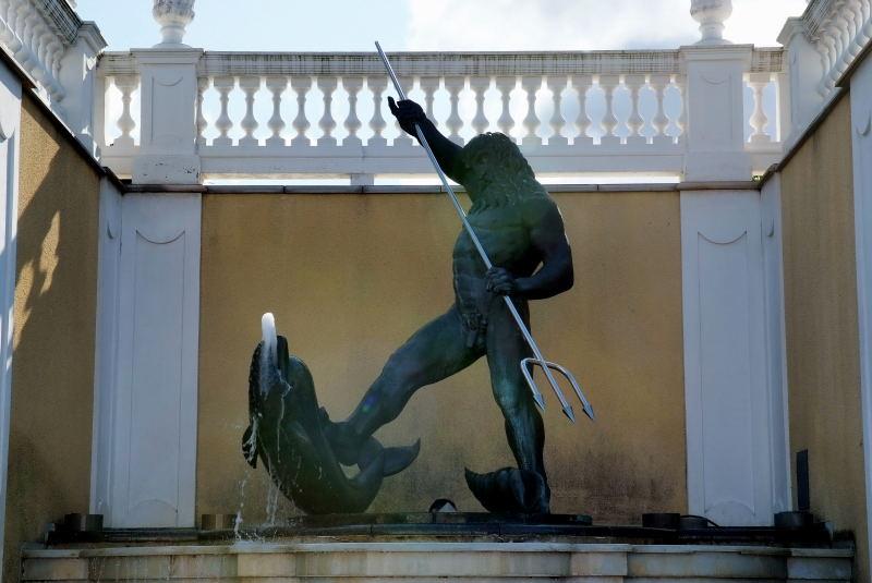 卡德羅格宮殿(2080)-位置剛好在卡德羅格公園的正中央..後面有ㄧ座英式花園(2063)..後花園左右邊各設圓形花式噴泉ㄧ座(2060)..花園正後方放海神雕像(2077)..卡德羅格公園內部共設有3個美術館..其中又以卡德羅格宮殿改名為-愛沙尼亞美術館-最有歷史價值.因此旅行社僅安排唯一在這裡有買門票入內參觀..另外兩個博物館就無緣啦..此外卡德羅格宮殿這裡也允許-無閃燈拍照.這也是吸引觀光客的因素之一。