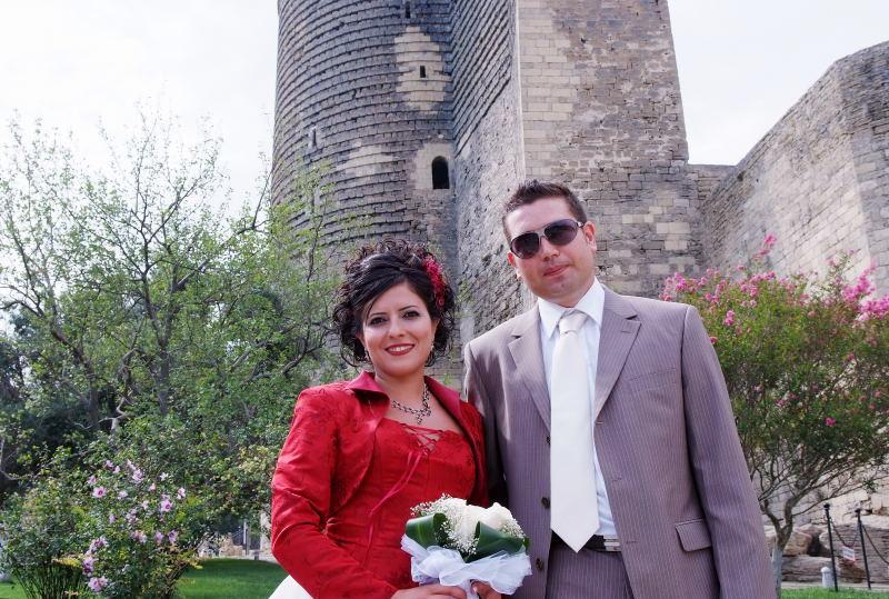 我們第一次參觀時已經傍晚了. 超過少女塔開放的時間.. 因為. 我們隔天上午已經規劃先去參觀-高布斯坦岩石畫. 之後. 下午再度專程在繞回來少女塔登頂參觀.. 這時剛好遇到一位新人正在少女塔拍外景(照片7006-31).. 當然我會趁機補捉一些美美的畫面帶回.. 希望同學們也能沾染一些喜氣.. 此外. 我們登頂參觀時. 剛好遇見一位時髦少女(照片7103-13).. 團員們都很高興的要跟她合照..沒想到他是聾啞人士.. 僅能用手語-很樂意.. 這種樂觀的態度比外表更加讓人讚賞哩.. 還有. 塔基部旁有一間紀念品小商店服務生真是迷人ㄚ(照片7079-80)最後就是照片7091有2棟建築物有中空的採光屋頂. 他是18世紀蓋的2間面對面的驛站旅館. 我們在亞塞拜然第3個晚餐. 就在右邊那間驛站(照片7124-25)享用晚餐…黃智琴 (2009年)