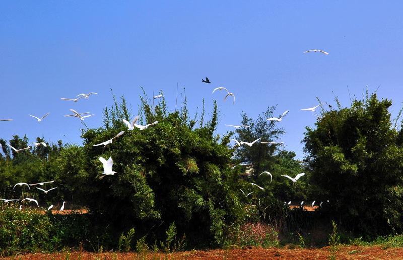 2006年9月30日上午.我從樹林市開車往老家的路上. 當快到母校-永安國小時.. 突然發現祥和動容的畫面-我當下就立刻停車欣賞久違的畫面.. 忍不住還是把放在後行李廂的隨身相機找出來...因為僅帶標準鏡頭. 必須離白鶴很近才能拍到比較大隻的畫面. 當我稍微靠近. 白鷺鷥就被驚嚇亂飛. 我僅能拍到群鶴亂舞的照片. 就當作另一種動感的照片吧.