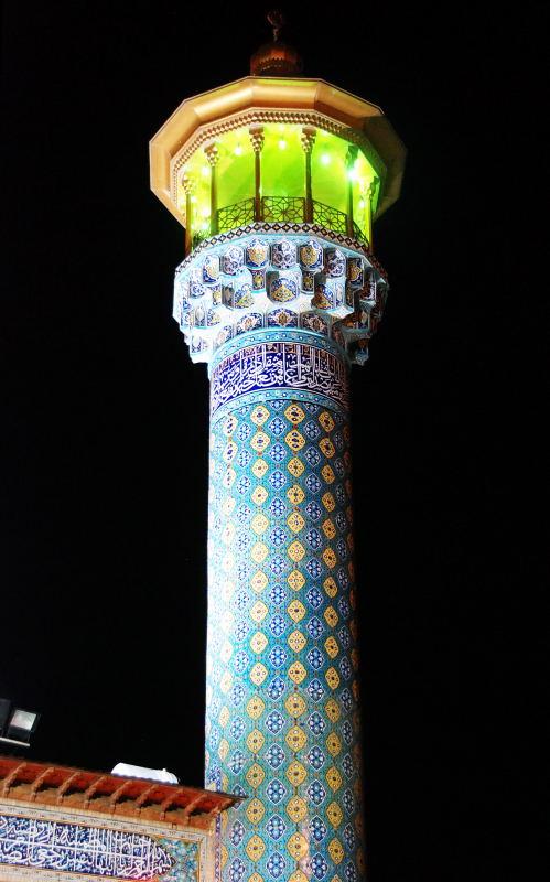 在色拉子第一個晚上. 晚餐後. 導遊先行帶領我們去體驗在夜間的聖人陵墓熱鬧印像.. 它是第七幾代伊瑪目的陵寢. 伊瑪目(Eman)原本的定義. 是指在伊斯蘭教朝拜時. 在前頭帶領唱頌可蘭經的人.. 但是在什葉派將其擴大解釋為帶領教會之人. 也就是-教宗-的意思.. 第7代伊瑪目-瑟伊哈梅茲. 在西元935年被殺死在色拉子.. 並葬在色拉子. 看到這麼盛大的人潮. 我應該能確定. 這位長者他生前必定集尊榮與萬民愛戴於一身.. 這個靈寢規模並不是很大. 但是前來祈福的民眾. 真的是可用人山人海來形容..