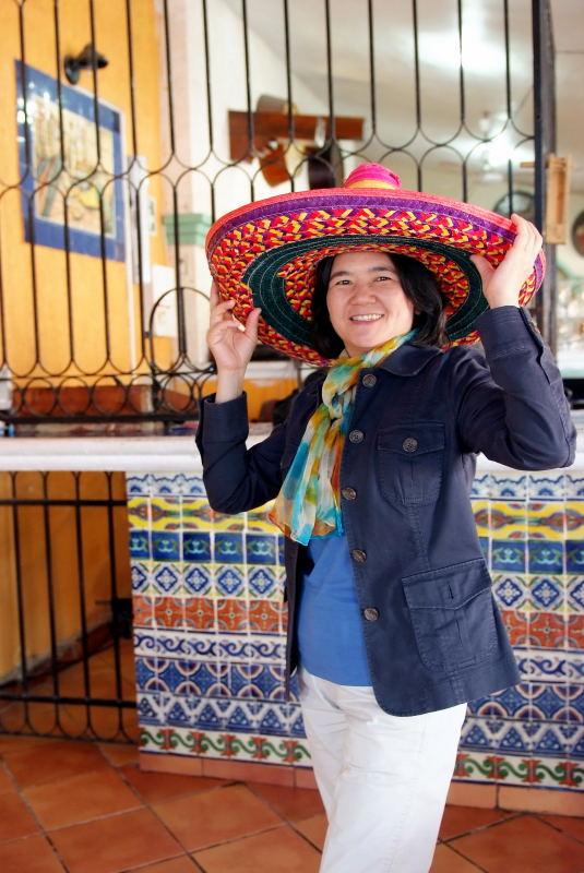 3115-17賣冰淇淋的小販剛好過街. 拍下跟石板路的背景.. 3119-20是現代版的裝飾藝術. 描述老鷹刁蛇. 這是墨西哥國徽的最重要圖騰.. 3113-50是在城牆附近的墨西哥餐廳用餐. 別以為我吃兩大盤. 其中一盤是團員的素食啦.. 墨西哥餐廳最讓人詬病的是沒有時間觀念. 出菜慢慢來.. 如果導遊能在30分鐘前先要求廚師立即做菜. 就不會每次遇到餐食都好像旅遊節奏遇到了瓶頸. 大家都好著急啦.. 既然餐食拖很長的時間. 我就把餐廳牆壁的磁磚也都翻拍了.. 團員也把牆壁裝飾的帽子拿下. 相互拍照取景呦..