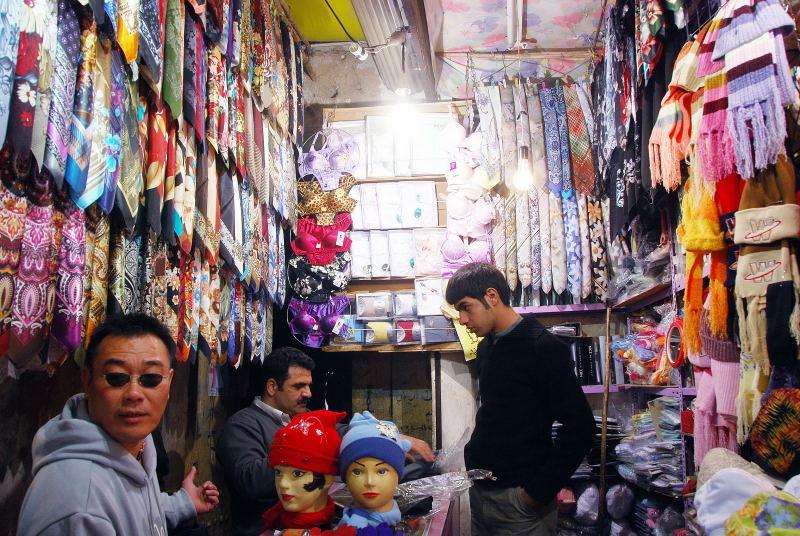 伊朗的旅行. 不知不覺中. 已經過半了. 導遊終於肯帶大夥去血拼-頭巾.. 我們先看照片4313. 這種質料最好. 剪裁最精緻的頭巾. 居然每條才賣12000里爾(約1.2美元).. 後來因為老闆太開心了(4316). 大優惠每條自動降到10000里爾.. 折合台幣僅34元(1美元換9000里爾).. 在這個普偏都是高物價的世界裏. 你不得不羨慕伊朗的超低物價呦..