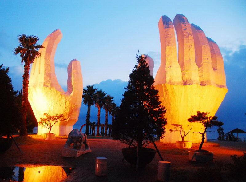 太陽郵輪飯店. 我認為是這趟旅遊全程中. 吃跟住都是最好的. 尤其是. 有吃到最棒的早餐哩..。 整個飯店是仿造90年代時. 南北韓第一次-親善探親船的外型打造.. 前後院還有碩大的公園與大型山水造景. 非常的壯觀.. 也許是經濟不景氣吧. 住房率居然不到3成.. 整個飯店就是非常的冷清.. 理論上. 現在應該正是雪嶽山的賞楓旺季. 那麼冷清. 確實是有點意外啦…黃智琴 (1997年)