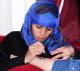 當我們結束了塔伊茲莎伯山的行程. 午餐安排在一間非常有特色的景觀餐廳享用。 午餐後在展館二樓的小房間裡“邂逅”了早有耳聞的葉門手繪.. 雖然已過中午,但我們團員排隊等著手繪幾乎擠滿了半間房間。 房間裡沒有什麼特殊的佈置,只是安放了靠牆的坐沙發,可以供等候的遊客暫時歇息,也可以供剛完成手繪的遊客晾乾圖案時暫坐。 兩位穿著傳統黑紗的葉門女子(一位是很有經驗的婦女, 一是初出茅廬14~15歲的小姪女),用笑彎了的雙眼招呼著每一位前來體驗的遊客。