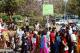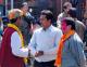 除了樂隊與遊街車以外, 我們看到臉上塗滿蒂卡粉的人群. (照片5337~5343) 此外, 參加的駱駝與馬匹都披上採布, 非常亮麗. (照片5329), 騎在上面的小朋友臉上露出滿足的笑容. 非常有節慶的氣氛。